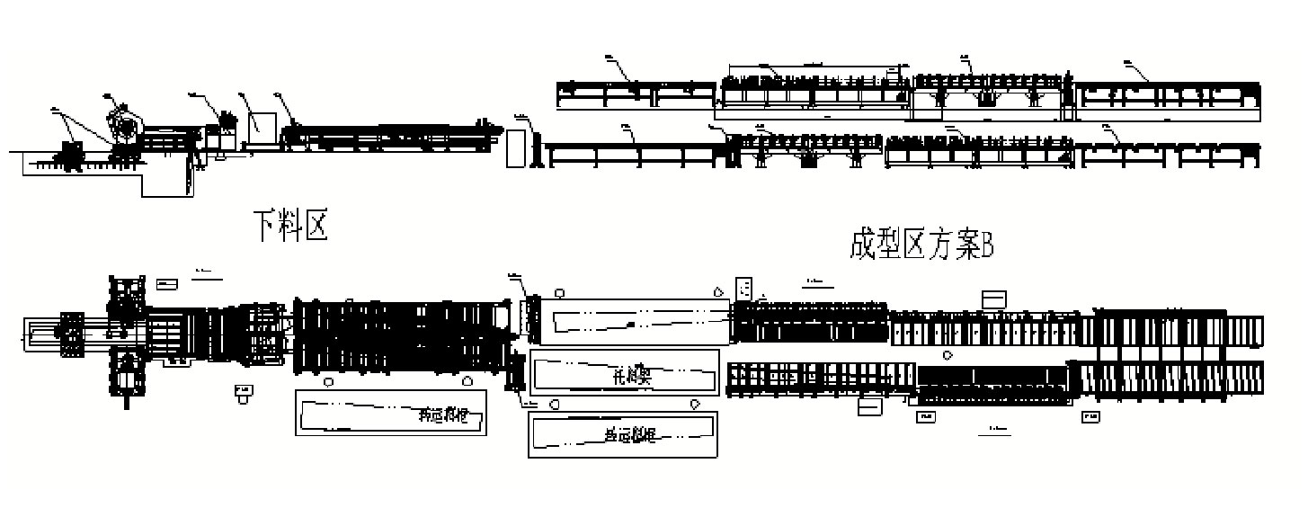 2 該生產(chǎn)線能生產(chǎn)多種板寬、截面、長(zhǎng)度的頂板,更換規(guī)格時(shí)需調(diào)整縱橫剪角度、沖缺口模具和切端頭擋料僅需調(diào)整相對(duì)位置,真空吸盤(pán)和翻邊壓料塊需根據(jù)板型不同做相應(yīng)更換,集中沖孔則需要根據(jù)板型的不同,調(diào)整個(gè)別沖孔機(jī),無(wú)需全部調(diào)整。通過(guò)以上操作,便可實(shí)現(xiàn)多種板型的生產(chǎn)。